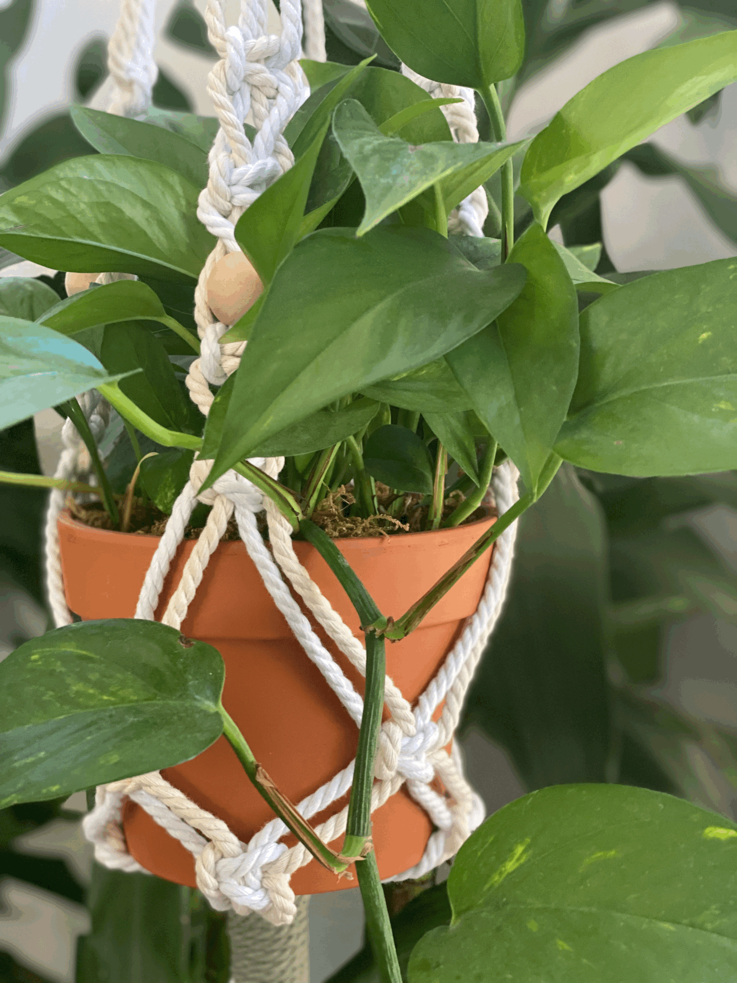 All my plant hangings are made with organic and recycled cotton cord. Custom colors available as well as the Calming Beauty Spa signature plant hanger (pictured).